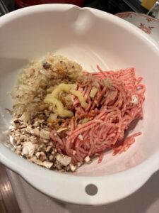 玉ねぎを入れるのは通常のハンバーグと同じです